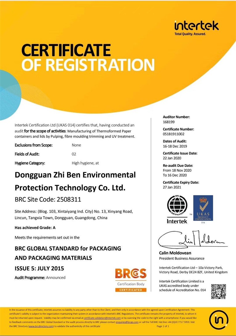 祝東莞市植本環保科技有限公司在創思維驗廠之家專業輔導下通過ITS  BRC認證并取得A級證書