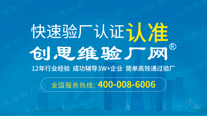 深圳創思維確保一次順利通過,專注驗廠12年,專業精湛!資源豐富!深圳創思維,擁有強大的行業關系網,讓您驗廠勝券在握!萬無一失!