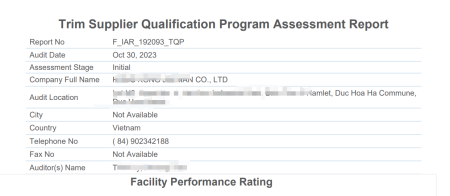 在創(chuàng)思維驗(yàn)廠網(wǎng)老師專業(yè)技術(shù)、全程跟進(jìn)耐心細(xì)致輔導(dǎo)以及公司全體員工配合下,一次性順利通過(guò)ITS-TQP驗(yàn)廠審核并且獲得94分,為將來(lái)公司發(fā)展奠定了良好的發(fā)展基礎(chǔ),既開拓了市場(chǎng)同時(shí)也增加了消費(fèi)者對(duì)公司的信賴,在這里再次祝賀HONGKONG俊文(越南)有限公司2023年一次性成功通過(guò)ITS-TQP驗(yàn)廠審核并且獲得94分,同時(shí)也期待未來(lái)再次與創(chuàng)思維驗(yàn)廠網(wǎng)合作!