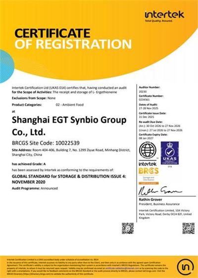 在創(chuàng)思維驗(yàn)廠網(wǎng)老師專業(yè)技術(shù)、全程跟進(jìn)耐心細(xì)致輔導(dǎo)以及公司全體員工配合下,一次性順利通過BRC認(rèn)證并取得A級(jí)證書,為將來公司發(fā)展奠定了良好的發(fā)展基礎(chǔ),既開拓了市場(chǎng)同時(shí)也增加了消費(fèi)者對(duì)公司的信賴,在這里再次祝賀上海麥角硫因科技有限公司2025年一次性成功通過BRC認(rèn)證并取得A級(jí)證書,同時(shí)也期待未來再次與創(chuàng)思維驗(yàn)廠網(wǎng)合作!